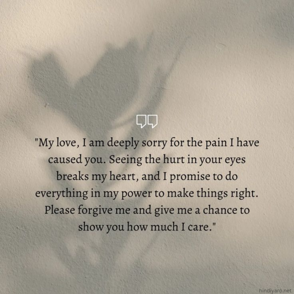 | 💔 I know I’ve hurt you deeply, and for that, I’m so sorry. I’ve had time to think about what happened, and I realize how my actions affected you. I can’t bear the thought of causing you pain. I promise to do better, to be better, and to make things right between us. Please forgive me. 🙏 |