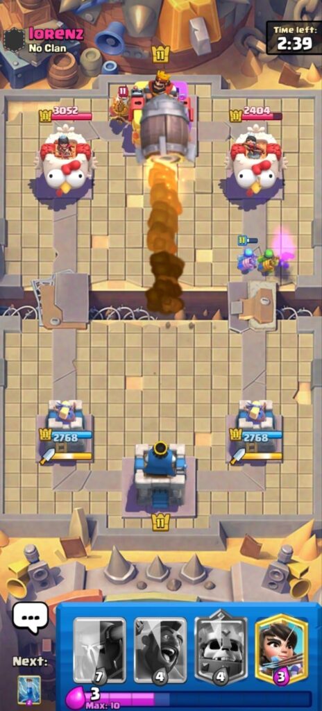 If your opponent does not use Clash Royale Rocket Ramble, focus on strengthening your defense and countering their troops. Once your defense is secure, start launching the Rocket Ramble. Protect your Princess Towers and cycle through three Rocket Rumbles to destroy your opponent’s King Tower in less than two minutes.