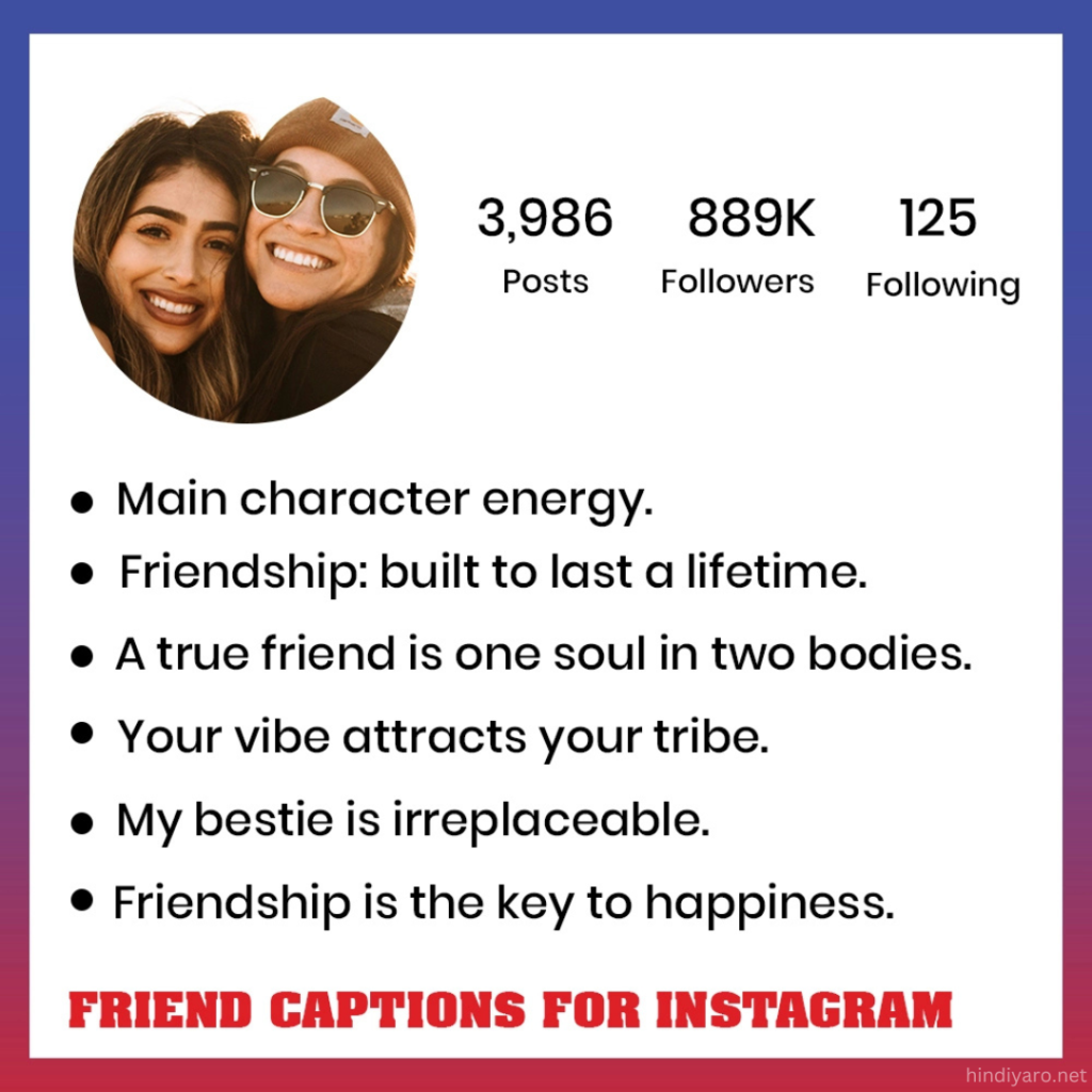Hi everyone! How are you all doing? Welcome to hindiyaro.net! Don’t worry if you’re staring at a nice picture of you and your best friend that would look amazing on your Instagram feed, but you can’t think of the proper caption for it. Once you’ve selected the perfect picture to share on Instagram with your best friend, do remember to write a catchy caption. The caption largely brings out the emotions expressed in the picture.