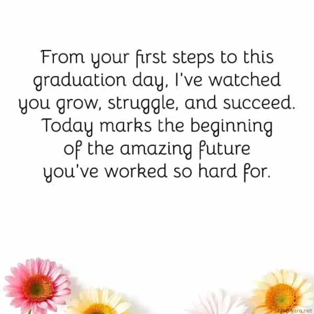 | 🌷 From your first steps to this graduation day, I’ve watched you grow, struggle, and succeed. Today marks the beginning of the amazing future you’ve worked so hard for. 🌟 |