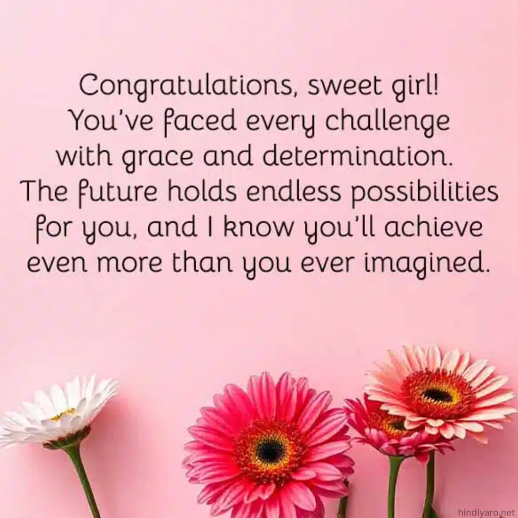 | 💖 Congratulations, sweet girl! You’ve faced every challenge with grace and determination. The future holds endless possibilities for you, and I know you’ll achieve even more than you ever imagined. 🌸 |