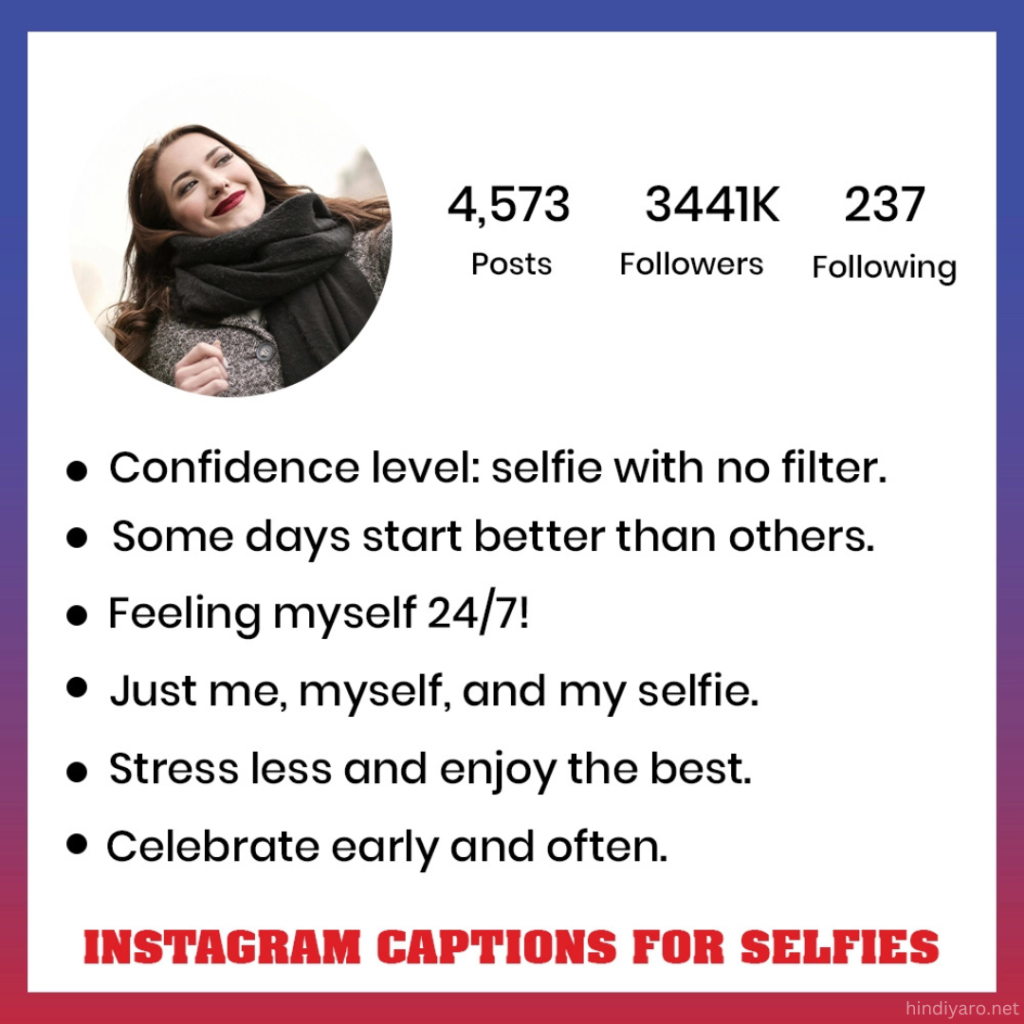 Hi everyone! How are you all doing? Welcome to hindiyaro.net! Before you share selfies on Instagram, it’s not just about getting the perfect light and pose. Captions play a crucial role, too. They can turn a regular post into something viral everyone wants to discuss. Here are some of the best Instagram captions for selfies that you can use in any situation. Whether you got a new haircut, did something fun, or are starting something new, these captions will help you share your story. You can also use them for photo albums, gifts, and more.
