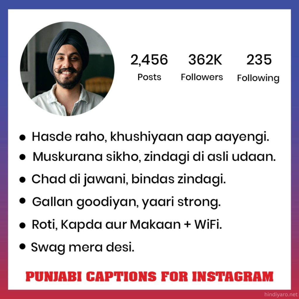 Hi everyone! How are you all doing? Welcome to hindiyaro.net! Want to add some Punjabi flavor to your Instagram? Imagine making your pictures even more vibrant with captions bursting with cultural zest! Get ready to spice up your feed with perfect Punjabi captions. Let these captions speak for your stories, bringing you closer to your followers through Punjabi expressions. Embrace the magic in each line and see your social media shine with authenticity and style.
