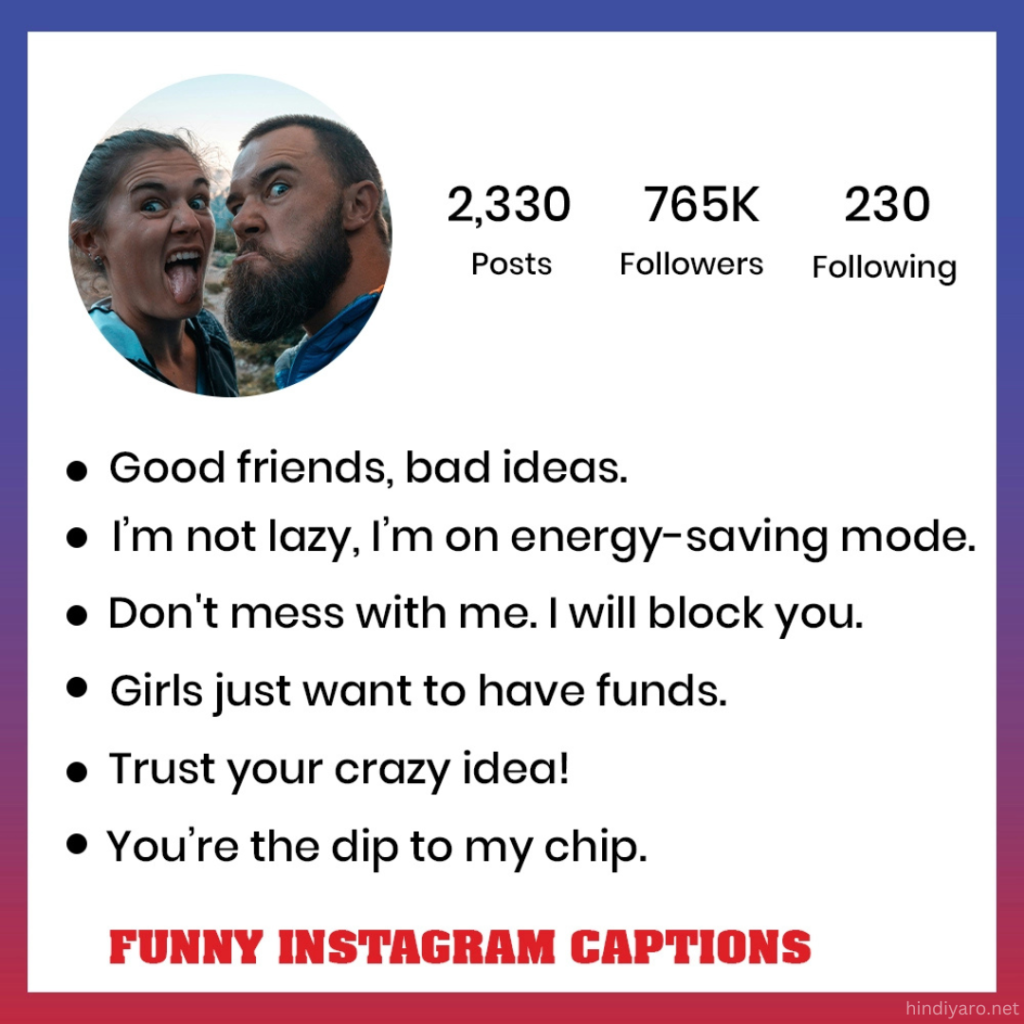 Hi everyone! How are you all doing? Welcome to hindiyaro.net! They say a picture may be worth a thousand words, but let’s be honest: funny Instagram captions can take a photo to a new level of hilarity. Because, let’s face it, nothing quite tops off a joke like a witty quote or a perfectly timed one-liner. An excellent Instagram caption is necessary for every fantastic Instagram picture. This can be witty, short, strange, quirky, adorable, or even vicious. Every Instagram photo has a backstory that can be found. Sharing a couple’s photo, a friend’s photo, a group shot, a selfie, or a landscape snap—you name it—makes a huge impact.