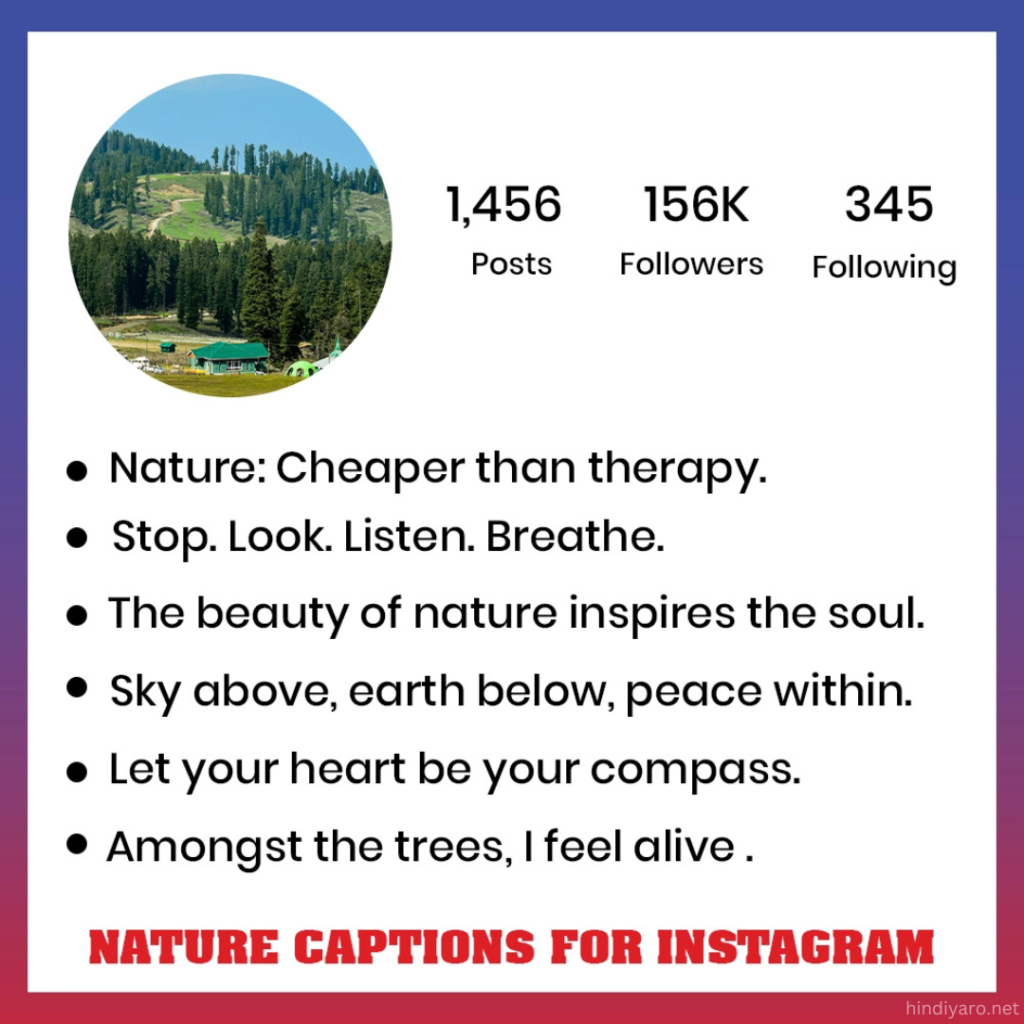 Hi everyone! How are you all doing? Welcome to hindiyaro.net! In todayโs world, you can easily experience the beauty of nature with just a click. Our captions help you understand and appreciate the wonders of the natural world.Whether hiking, camping, exploring nature, chasing waterfalls, heading to the mountains or the beach, or just enjoying a sunny day outside โ each adventure offers something special and picturesque for your Instagram feed.