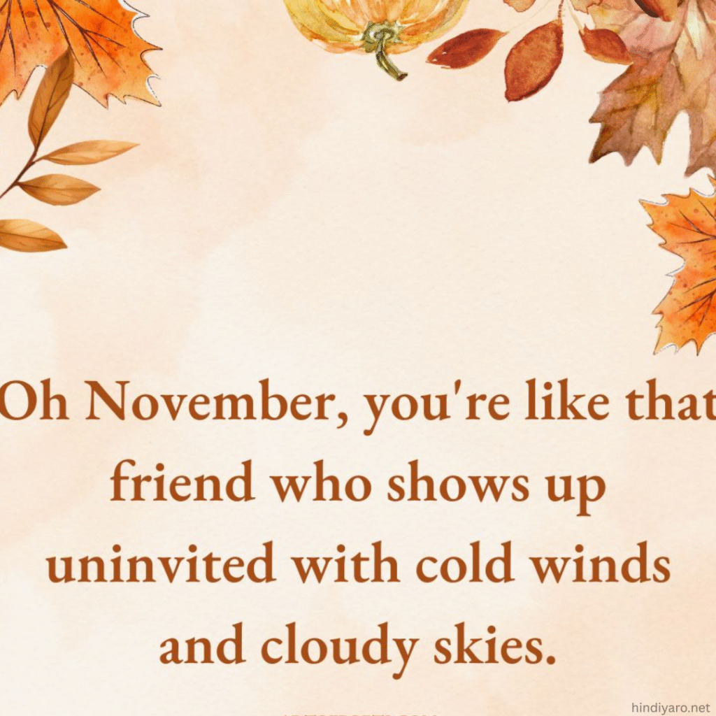 Funny November quotes are humorous sayings or messages about the month of November, capturing its cozy, chilly, and sometimes chaotic vibes with a touch of humor.