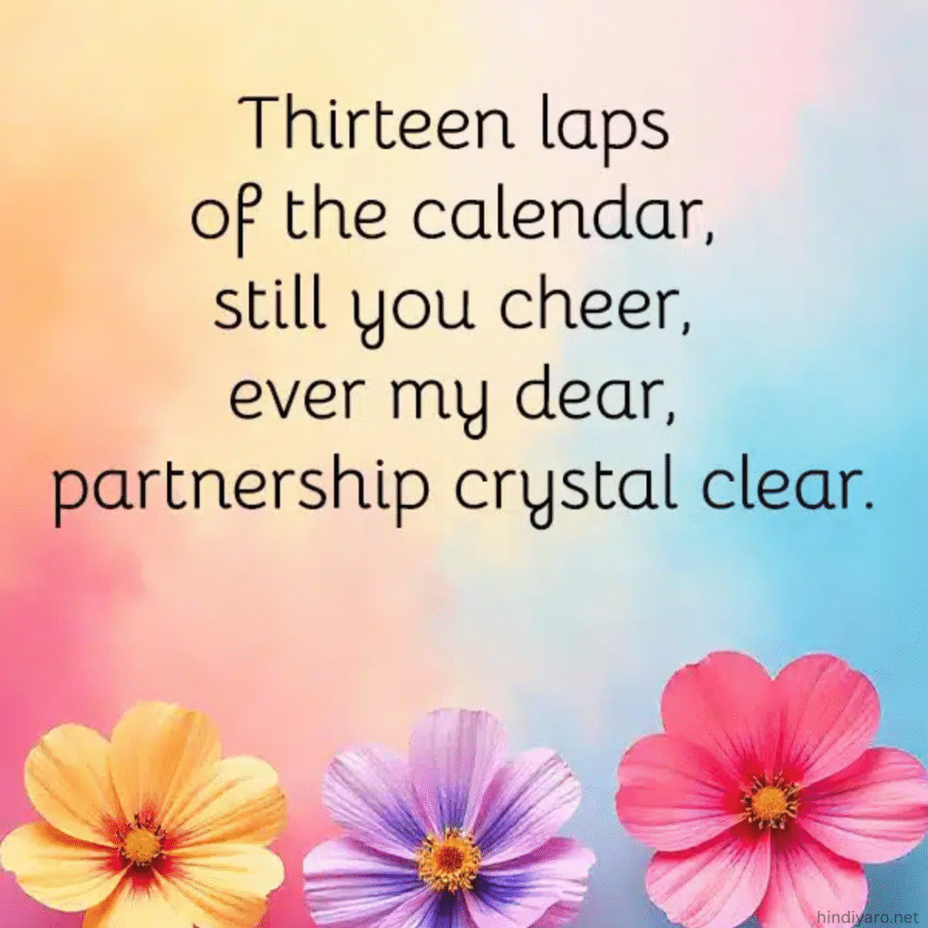 📅 Thirteen laps of the calendar, still you cheer, ever my dear, partnership crystal clear. 💑