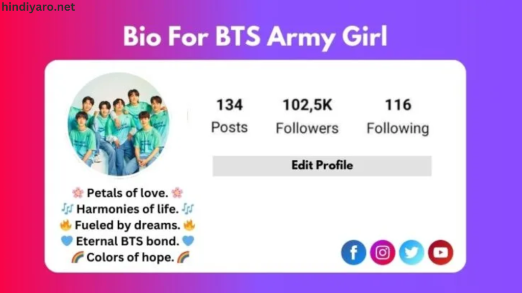 Crafting the perfect Instagram bio as a BTS fan is all about expressing your love, admiration, and connection to the group in a way that’s authentic and engaging. Whether it’s highlighting your favorite member, quoting a meaningful lyric, or sharing your ARMY pride, your bio is a reflection of your passion for BTS. Add a touch of creativity, humor, or emotion, and you’ll have a bio that resonates with fellow fans and captures the spirit of the Bangtan Boys! 💜