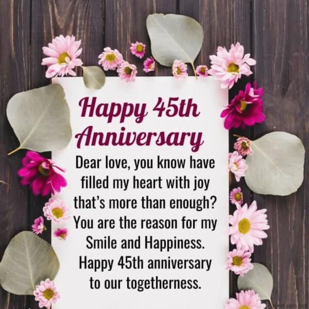 Reaching a 45th wedding anniversary is a beautiful reminder of enduring love, shared laughter, and a lifetime of memories. Whether your message is heartfelt, humorous, or poetic, it’s the thought and emotion behind the words that make it meaningful. Celebrate this sapphire milestone with words that honor the journey, the joy, and the bond that only grows stronger with time.
